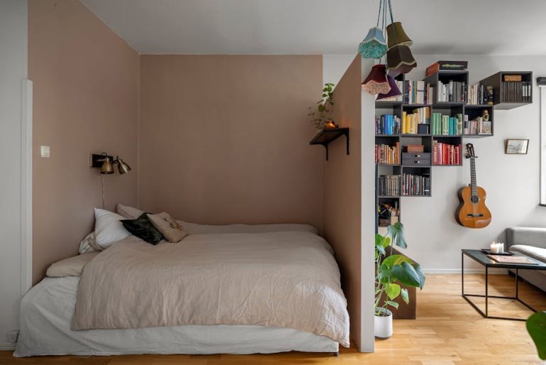 - Espaces cachés : exploiter l’espace sous les lits ou les escaliers pour y placer des tiroirs ou des paniers peut faire une différence significative dans l’organisation de l’espace.